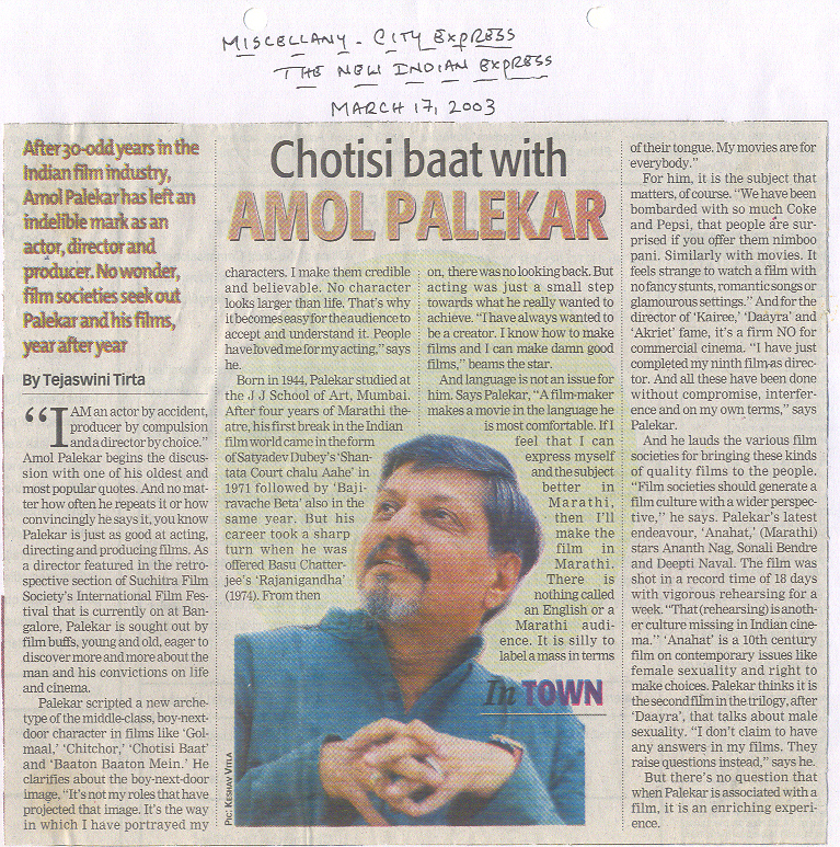 After 30-odd years in the Indian film industry, Amol Palekar has left an indelible mark as an actor, director and producer. No wonder film societies seek out Palekar and his films year after year.